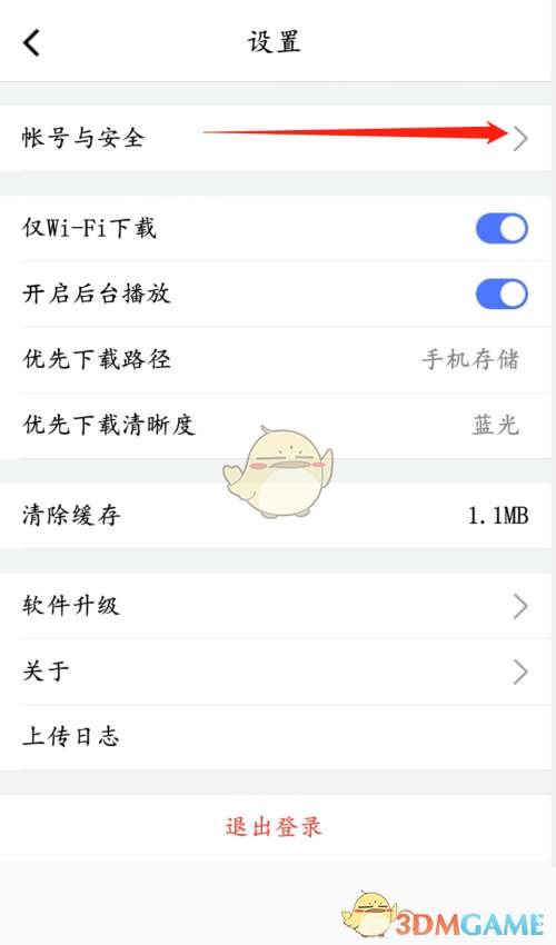 2、然后在【设置】页,找到【账号与安全】选项,点击打开;
