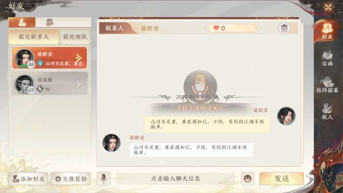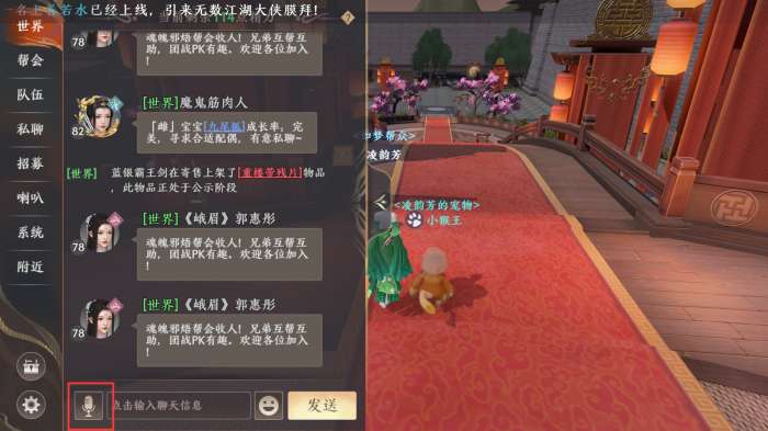 与其他侠士私聊时候,也是可以通过点击【话筒】进行语音发送。
