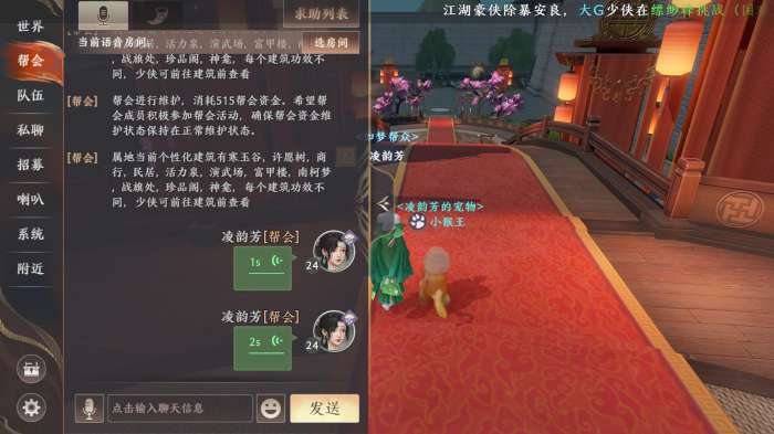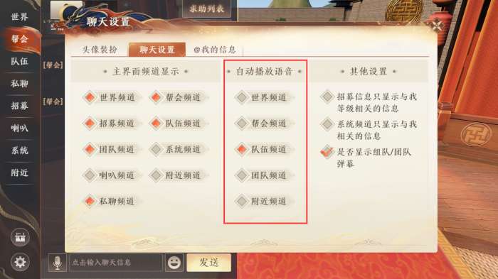 同时少侠也可以在主界面,快速切换【帮会】/【世界】频道进行发送语音信息,长按即可。