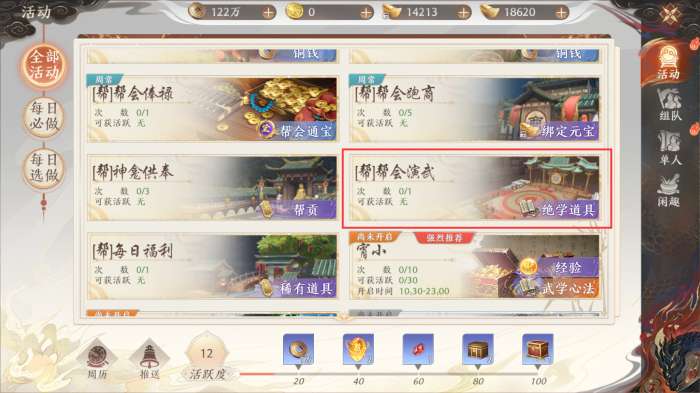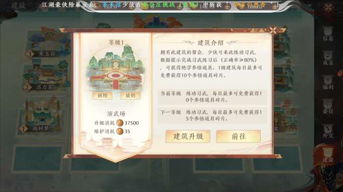 参与条件:加入帮会,并且拥有【演武场】建筑。