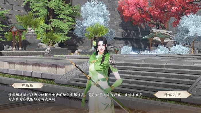 与严乌乌对话并点击【开始习武】后正式进入习武界面。