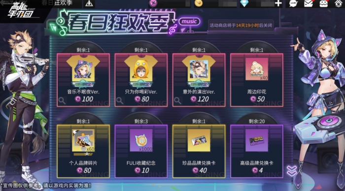 特别商店“春日狂欢季”开放,使用特殊道具“蛙蛙纽扣”可兑换珍贵道具,以及森林音乐节限定特别款——“梅根·音乐不眠夜Ver.”、“卡缪·意外的演出Ver.”、“绿子·只为你喝彩Ver.”,限定主题装扮期待点亮后宅。