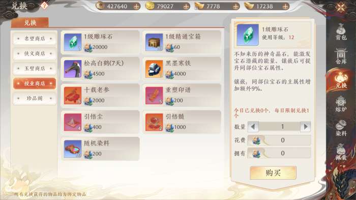 授业点:徒弟出师后,师父获得授业点。授业点可在兑换商店中兑换奖励。