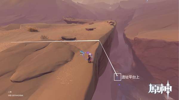从锚点3前往锚点4,来到悬崖边上,朝着东南方向过去,降落到遗址平台上。