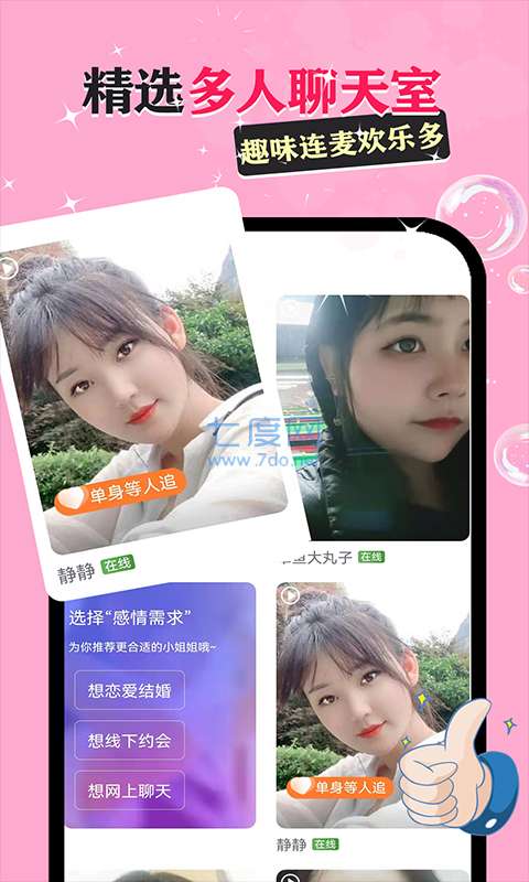 【思聊一对一社交app】十分热门的恋爱交友软件,这里有很多优质用户驻扎,每一个用户的信息都是经过平台认证的,让大家可以在里面放心交友。而且这款软件随时可以为用户匹配合适自己的聊天对象,让用户体验社交乐趣,不再孤独。一对一视频聊天,零距离接触,让你我间的距离快速拉近。