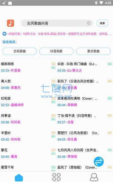 3、支持多种音质选择,无广告,支持抖音、古风和英文歌榜单推荐;