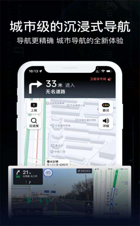 将APP内的导航指示和实景场景画面融为一体呈现在用户眼前,使人仿若身处其中。在雨天、夜晚等特殊情况下,会自动开启特效,增强画面亮度,让用户更加舒适便捷地使用导航功能。