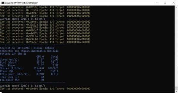 修改完成后保存,然后双击这个文件(mine_eth_4G.bat),就可以开始挖矿了。一般来说会显示下面这样的提示信息,没有报错就行。