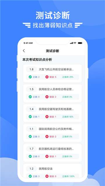 3.测试诊断:该软件提供全面的测试诊断功能,可以帮助飞行员评估和检测自己的知识掌握程度,为进一步的学习和提升制定个性化方案。