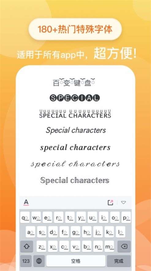 不需要安装就可以使用在任何的应用中,都会给你显示出来,可以体验到它的功能强大,只需要打开键盘就可以输入特殊的文本,有着非常简便的输入方式,还可以使用在任何社交平台上面,打造出自己的个性化语音交流功能,不管是想要手写体花哨体,还是楷书和行书,有着多种不一样的潮流字库,软件的界面也是非常的简约,有着清新的界面,缓解自己的压力,还可以提升你的审美。