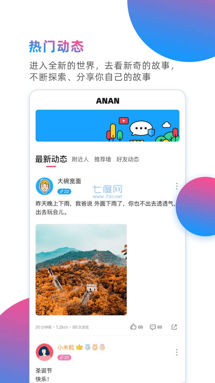 安安一对一聊天app,在这里,结识你的心仪女神/男神。他们有良好的教育背景,优越的生活环境,殷实的收入,令人羡慕的工作,却苦于在风华正茂的年纪难遇知音,努力谈一场恋爱,美好生活正在向你走来!