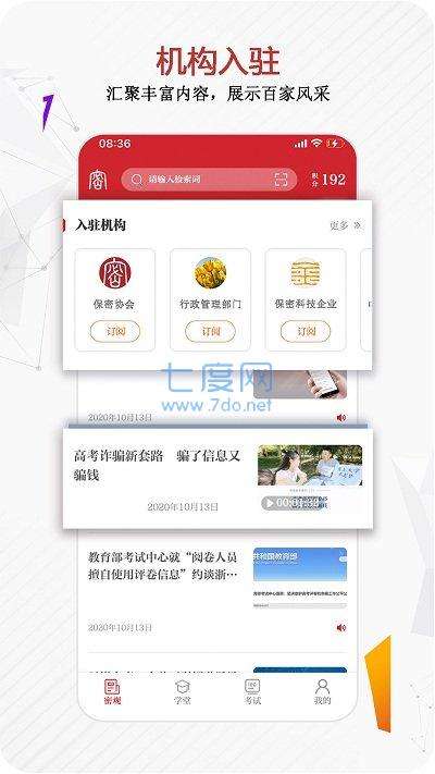 及时发布有关国家秘密、工作秘密、商业秘密、个人隐私等秘密信息保护方面的新闻动态,提供保密专业图书、期刊、音频、视频等内容丰富的保密专业资源,具有保密考试、知识速查、投票调查、在线直播、互动交流等功能,为广大用户提供专业知识资源平台,是大家了解保密知识常识、学习保密技能的移动工具。